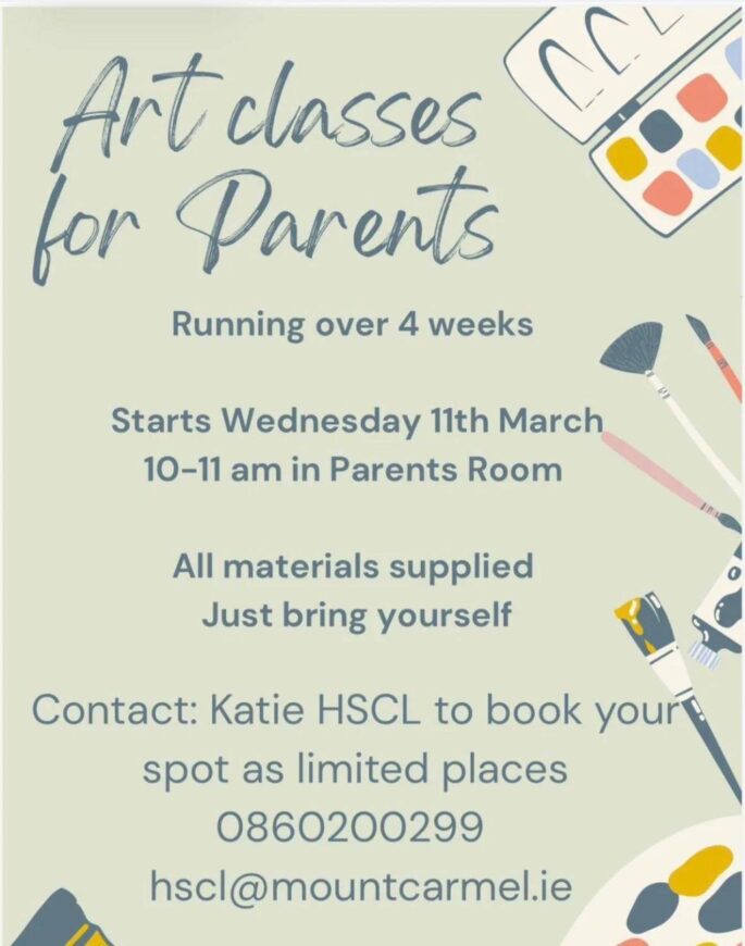 A reminder of our Art classes for parents, just two more classes left this term! All welcome to join!