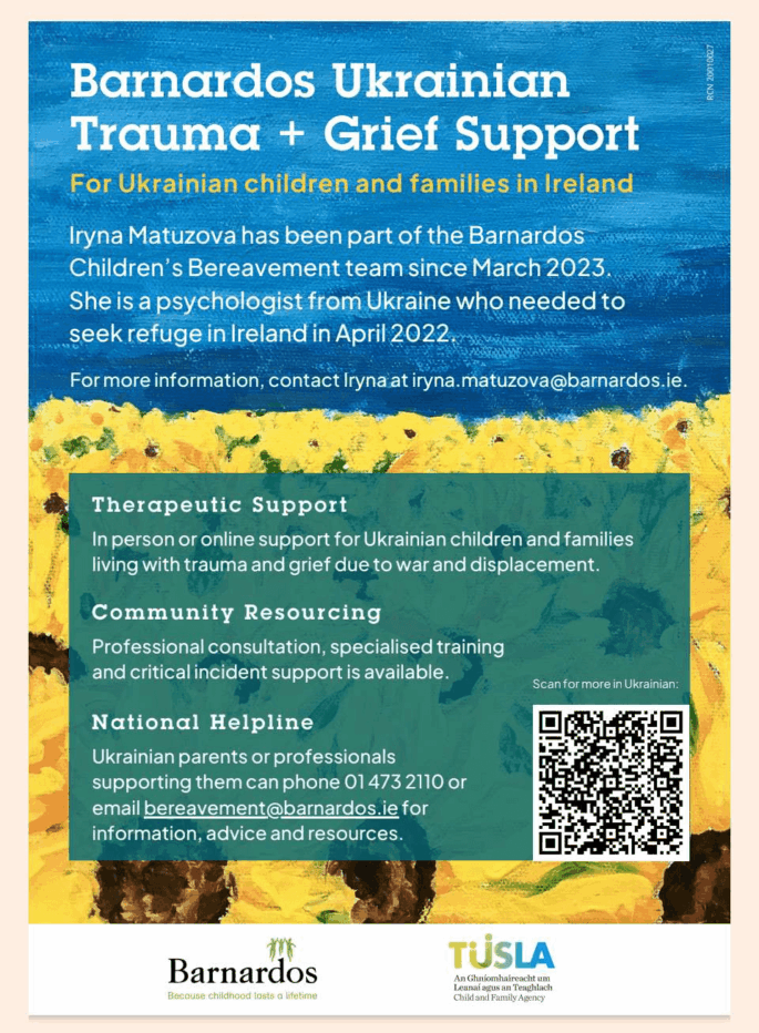 Barnardos Ukrainian Trauma and Relief Support March 2, 2026 by Mount Carmel Secondary School Please find details of Barnardos’ trauma and relief support for Ukrainian families in the poster attached.
