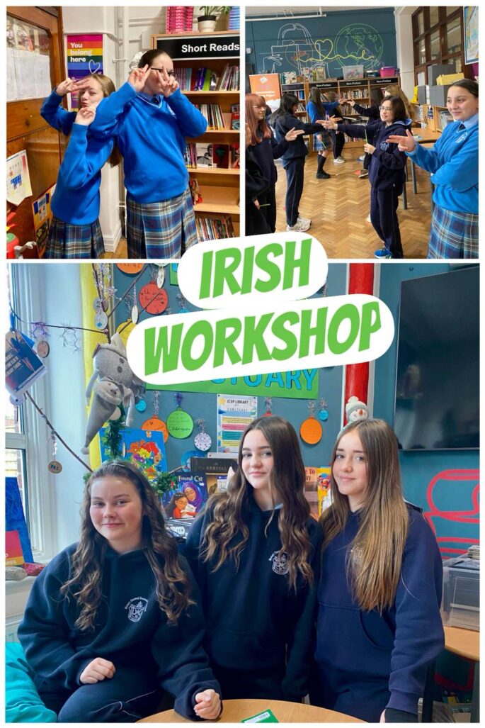 2nd & 3rd Year students took part in energetic Irish-speaking workshops with High Rock Productions in our JCSP Library on Monday!
