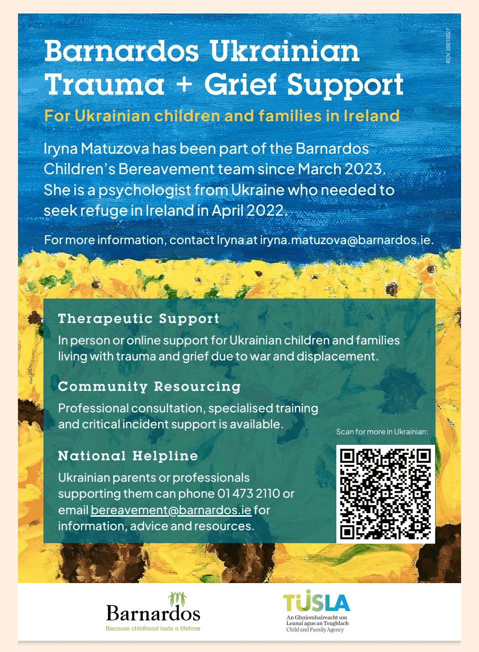 Please find details of Barnardos' trauma and relief support for Ukrainian families in the poster attached.